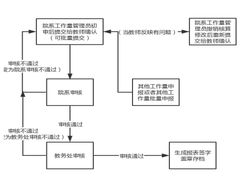 院系工作量管理员操作流程见下图1,具体操作流程和注意事项见附件2(院系工作量管理员操作说明)。