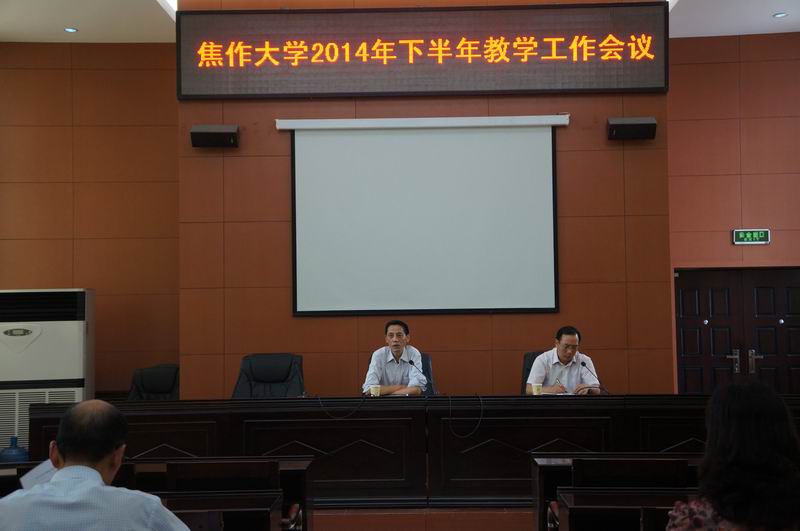 9月25日下午,学校在行政楼2楼会议室召开了教学工作会议。各教学院部院长、书记和领导班子全体成员及教务处所有工作人员参加了会议。会议由教务处处长李向东主持,副校长马韵新教授出席会议并做了重要讲话。会议下发了《教务处2014年下半年工作方案》、《yl23411永利(集团)有限公司官网关于加强师风师德教风建设的意见》、《yl23411永利(集团)有限公司官网顶岗实习管理办法》(讨论稿)和《关于2014级新生教学工作的若干指导性意见》(讨论稿)。
