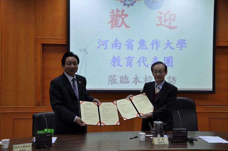 2010年11月19日-11月26日,yl23411永利(集团)有限公司官网校长林效廷、纪检书记张浦、教务处处长李向东、经管学院院长卢国红、太极武术学院院长邢树强以及焦作市统战部副部长杨鹤强一行6人,到台湾考察高等教育以及合作办学事宜,期间先后考察了明新科技大学、远东科技大学和明道大学三所高校,受到了三所学校领导和师生的热情接待,分别和三所高校签署了正式的合作协议,达成了多项合作意向。