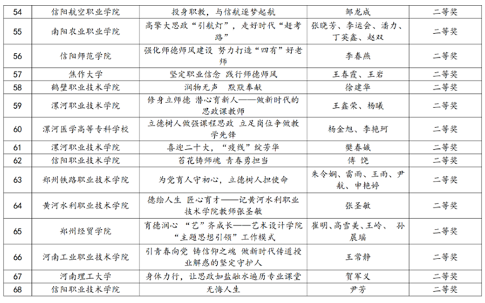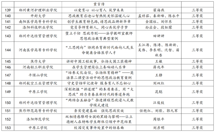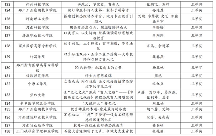 近日,河南省教育厅公布了河南省高校“同心喜迎二十大 师德筑梦育新人”教师思想政治教育典型案例征集展示活动评审结果,我校选送的教师思想政治教育典型案例征文作品荣获二等奖1项、三等奖2项。