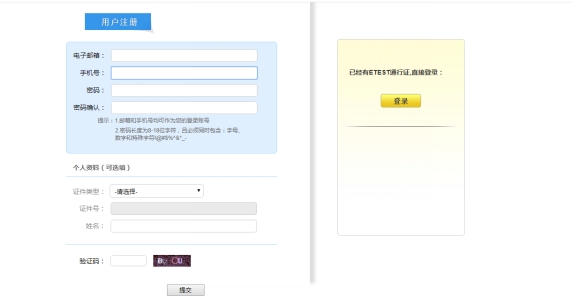 ②.点击“注册新用户”即可进行注册,注册时必须使用电子邮箱进行注册。注册后请牢记通行证账号和密码。如下图: